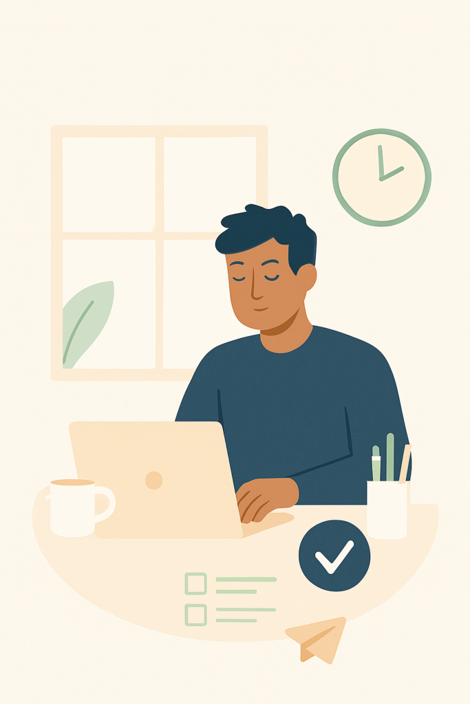 “Flat-style illustration of a person working in a calm, focused environment.”